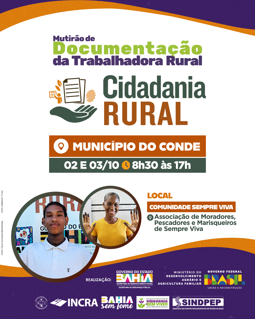 A iniciativa é realizada pelo Governo da Bahia, por meio da Secretaria de Desenvolvimento Rural (SDR), com o apoio do Ministério do Desenvolvimento Agrário e Agricultura Familiar (MDA) e do programa Bahia Sem Fome. A ação também conta com a parceria da Receita Federal, do INCRA, do Instituto Pedro Mello e de bancos públicos.