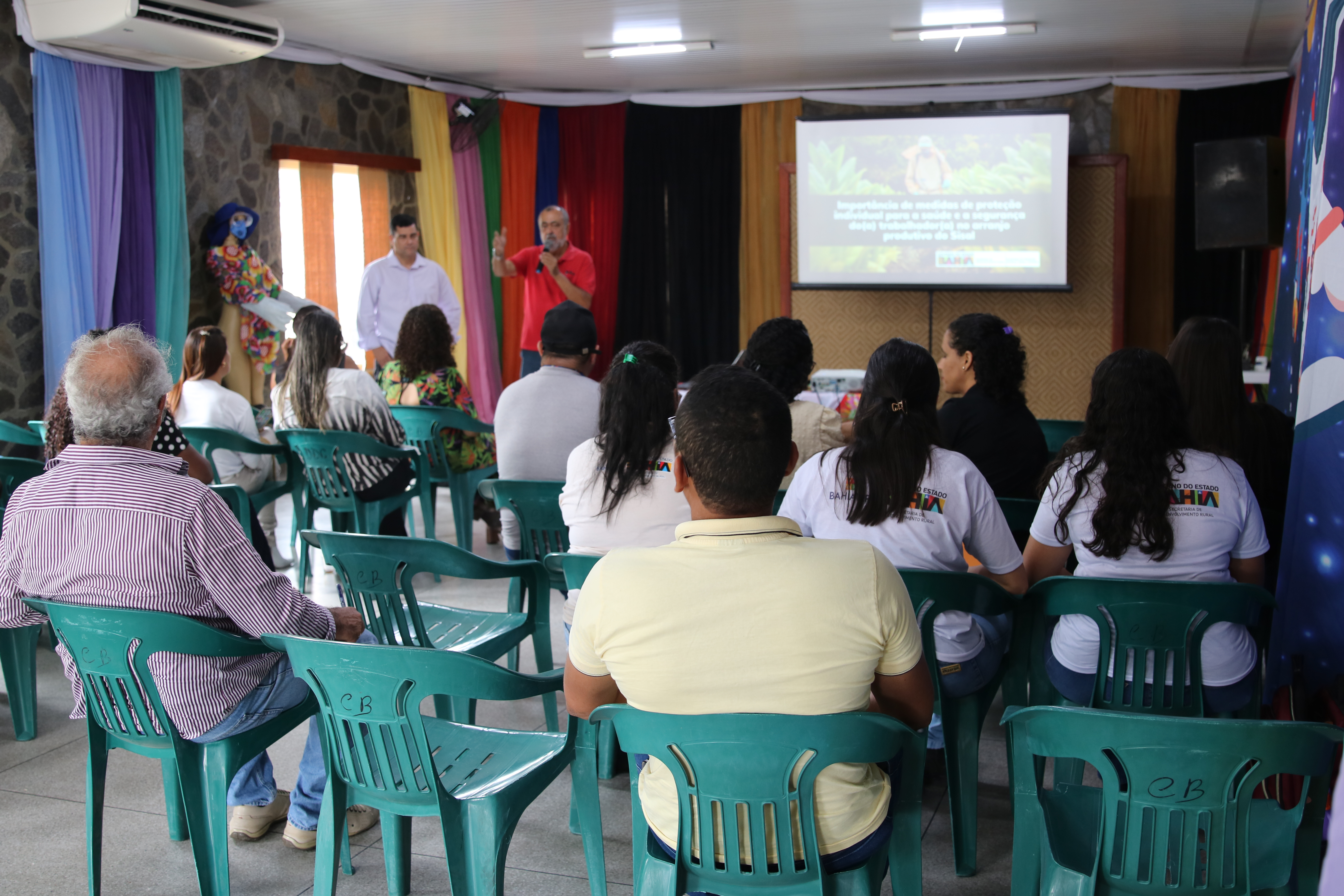 O município de Valente, Território do Sisal, foi palco de uma iniciativa voltada à promoção da segurança e saúde no trabalho para os profissionais que atuam no arranjo produtivo do sisal. A palestra “Importância de medidas de proteção individual para a Saúde e a Segurança do(a) Trabalhador(a) rural no Arranjo Produtivo do Sisal” é uma ação da Secretaria de Desenvolvimento Rural (SDR), em parceria com a Secretaria do Trabalho, Emprego, Renda e Esporte (Setre) e a Associação de Desenvolvimento Sustentável e Solidário da Região Sisaleira (Apaeb).