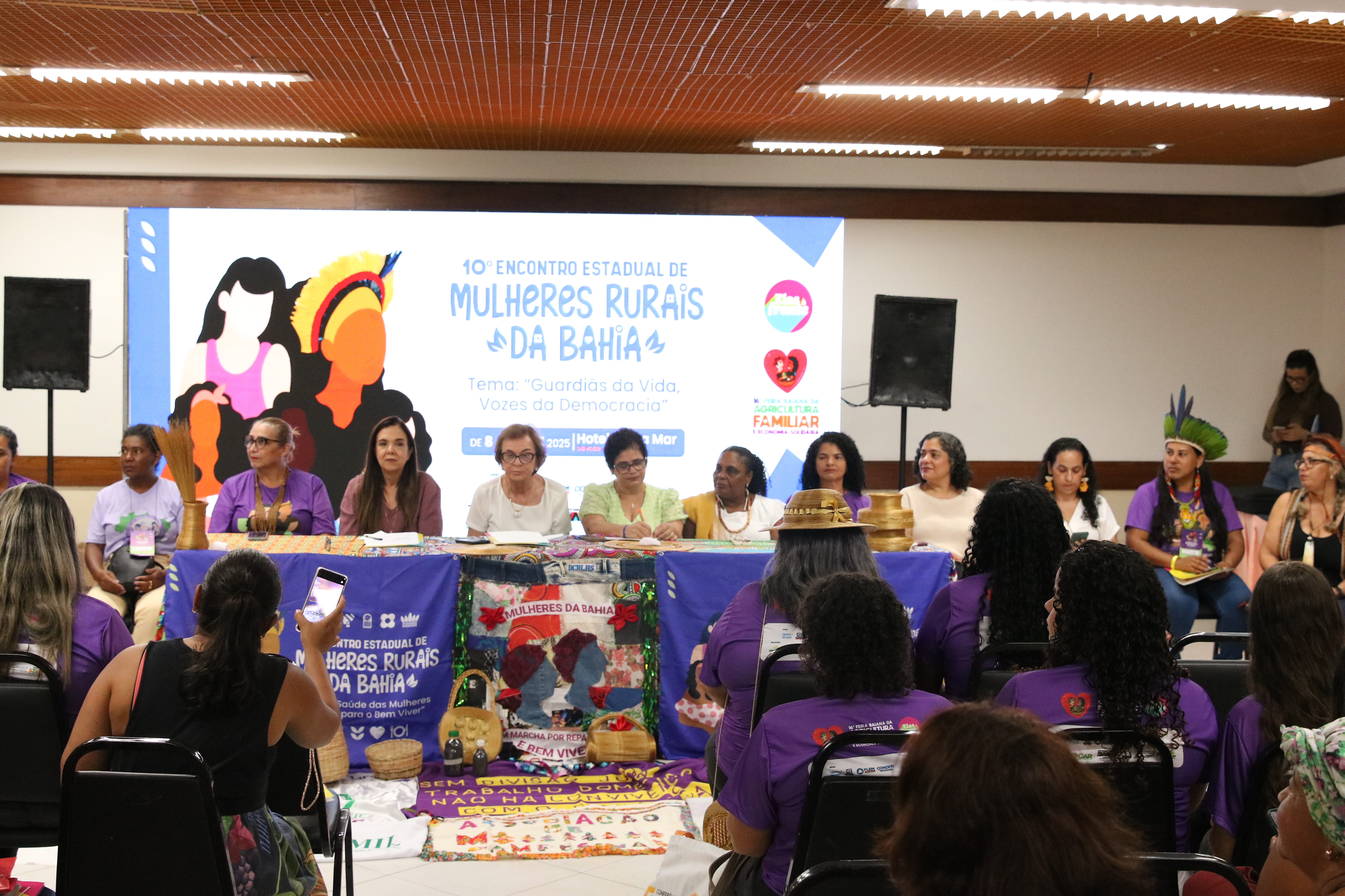 O encontro acontece até o dia 10 de dezembro, com o tema “Guardiãs da Vida, Vozes da Democracia” e a participação de 250 mulheres dos 27 Territórios de Identidade da Bahia. Durante a abertura, estiveram presentes agricultoras familiares, ribeirinhas, marisqueiras, pescadoras, assentadas da reforma agrária e do crédito fundiário, geraizeiras, mulheres de fundo e fecho de pasto e representantes de povos e comunidades tradicionais, refletindo a diversidade que constrói e fortalece o rural baiano.