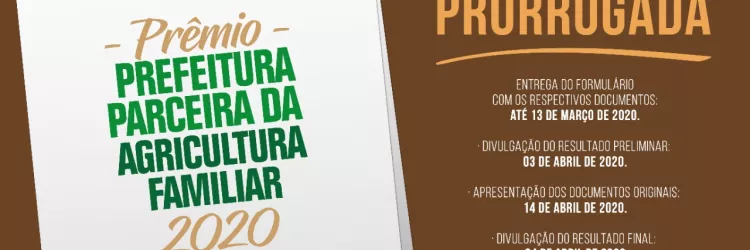 Prorrogado o prazo para inscrição do Prêmio Prefeitura Parceira da Agricultura Familiar