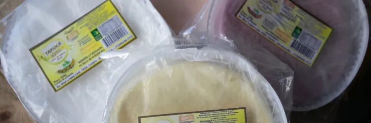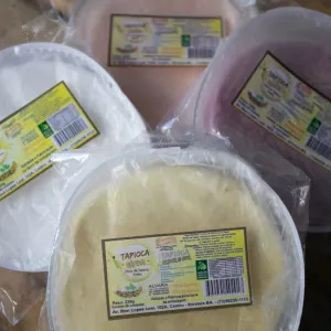Beijus de tapioca enriquecidos, em discos, são comercializadas na Feira Baiana da Agricultura Familiar
