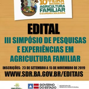 Estão abertas as inscrições de trabalhos para o III Simpósio de Pesquisas e Experiências em Agricultura Familiar