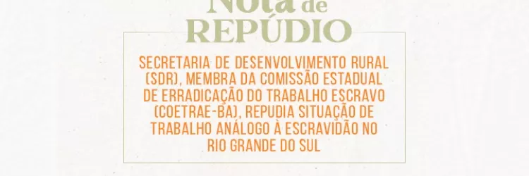 Secretaria de Desenvolvimento Rural (SDR), membra da Comissão Estadual de Erradicação do Trabalho Escravo (Coetrae-BA), repudia…