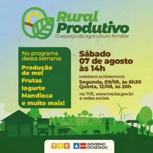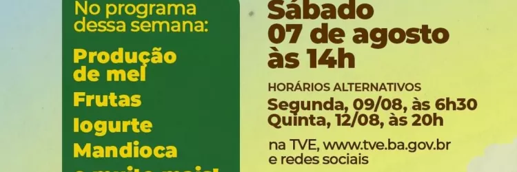 Mel, frutas, mandioca, iogurtes, biscoitos e pão de queijo no Rural Produtivo na TVE