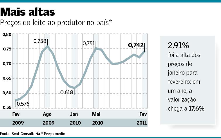 Preço do leite ao produtor sobe quase 3% mesmo na safra
