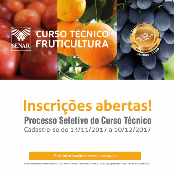 INSCRIÇÕES ABERTAS PARA CURSO TÉCNICO EM FRUTICULTURA DO SENAR