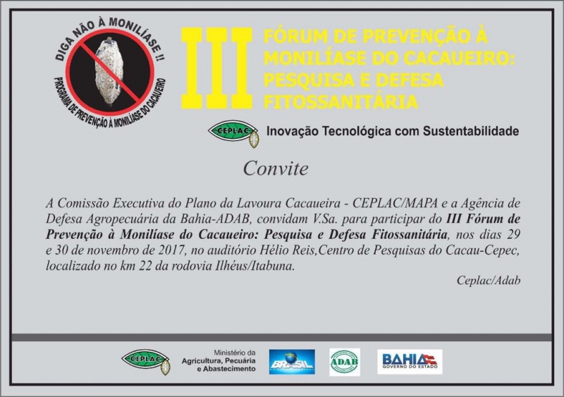 III FÓRUM DE PREVENÇÃO À MONILÍASE DO CACAUEIRO: PESQUISA E DEFESA FITOSSANITÁRIA