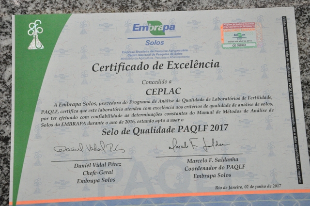 Análise de solos com qualidade garante mais um Certificado de Excelência para a CEPLAC/MAPA