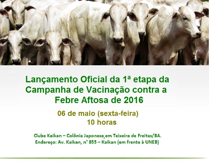 Campanha de Vacinação contra Aftosa é lançada oficialmente em Teixeira de Freitas