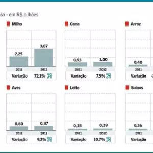 A correção na estimativa do ministério foi determinada pelas disparadas de soja e milho, grãos que no primeiro semestre pressionaram o VBP para baixo em razão da quebra da safra no Sul, em decorrência da estiagem provocada pelo La Niña. Esse fator colaborou para sustentar as cotações internacionais e domésticas de ambos nos primeiros meses deste ano, mas os saltos rumo a níveis históricos aconteceram a partir do fim do primeiro semestre, quando a produção americana deste ciclo 2012/13 começou a ser prejudicada também por uma severa seca.