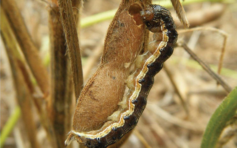 Segundo Bueno, seria importante uma avaliação prévia da área a ser plantada, para verificar a presença da helicoverpa na vegetação de cobertura e realizar uma dessecação de três a quatro semanas antes da semeadura, procedimento que eliminaria a fonte de alimento da lagarta.