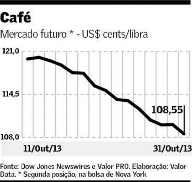 O café arábica seguiu ontem em queda livre na bolsa de Nova York, operando no menor patamar em mais de 4 anos e meio. Os contratos com vencimento em março encerraram com uma desvalorização de 140 pontos, a US$ 1,0855 por libra-peso. O início da colheita na Colômbia e nos países da América Central tem reforçado a pressão que já existia sobre o grão, tendo em vista que a produção no Brasil este ano foi expressiva. Do lado da demanda, as notícias também não são favoráveis aos preços. Agentes relatam que os exportadores contam com um volume razoável nos estoques e as indústrias também parecem estar abastecidas pelo menos até o fim do ano. No mercado interno, o indicador Cepea/Esalq para o arábica recuou 0,15%, a R$ 242,03 a saca de 60 quilos.