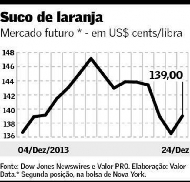 Depois de quatro pregões seguidos em queda, período em que acumulou perdas de mais de 5%, os preços do suco de laranja reagiram na terça-feira na bolsa de Nova York. Os contratos com entrega em março fecharam em alta de 250 pontos, a US$ 1,39 por libra-peso. O clima favorável para as lavouras da Flórida (Estado americano que detém o segundo maior pomar de citros do mundo) contribuiu para empurrar o produto para o terreno negativo nas últimas sessões. Ainda assim, a perspectiva é de que a produção da fruta na Flórida seja a menor em mais de vinte anos, o que dá certa sustentação às cotações. No mercado interno, a laranja para a indústria foi negociada na segunda-feira em alta de 1,06%, a R$ 8,60 a caixa de 40,8 quilos, segundo o Cepea/Esalq.