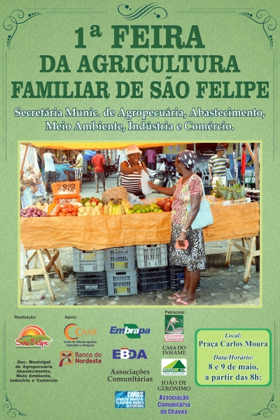Dias 08 e 09 de Maio de 2014, a partir das 8h na Praca Carlos Moura, venha participar da nossa I Feira da Agricultura Familiar com o Tema: "Restaurando a historia da agricultura no Município".