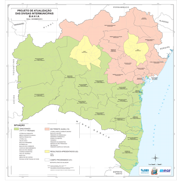 Coordenado pela SEI, o projeto de Atualização das Divisas Intermunicipais da Bahia já conta com 14 novas leis sancionadas pelo Governo do Estado, beneficiando as populações de 228 municípios, em 14 territórios de identidade. Atualmente, 10 propostas de novas leis encaminhadas pela SEI tramitam na ALBA, outros dois TI estão em fase de conclusão pela equipe técnica da SEI e IBGE, e o TI Metropolitano de Salvador era o último que faltava ser iniciado.