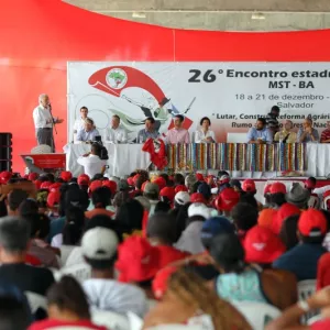 Cerca de 1,2 mil representantes de acampamentos e assentamentos da Bahia estão reunidos, em Feira de Santana, no 27º Encontro Estadual do Movimento dos Trabalhadores Rurais Sem Terra (MST), aberto na quinta-feira (15). O Governo do Estado participou das discussões no primeiro dia do evento, com a presença dos titulares da Secretaria de Desenvolvimento Rural (SDR), Jerônimo Rodrigues, e da Secretaria de Promoção da Igualdade Racial (Sepromi), Vera Lúcia Barbosa, além de dirigentes de órgãos estaduais.