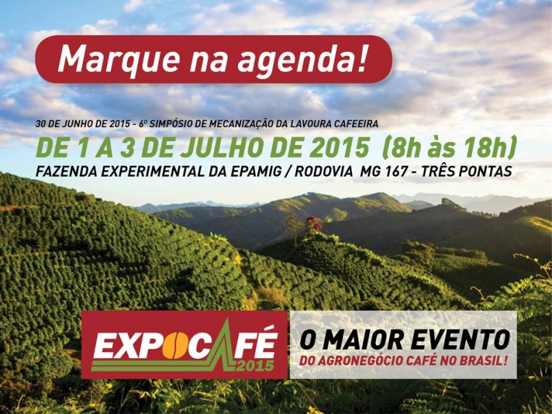 Antecedendo a Expocafé 2015, o Campo Experimental da Epamig recebe em sua tenda de eventos, no dia 30 de junho, o 6º Simpósio de Mecanização da Lavoura Cafeeira, que reúne pesquisadores, professores universitários, técnicos e cafeicultores de diversos estados brasileiros e representa oportunidade para intercâmbio de informações sobre tecnologia e produção mecanizada.