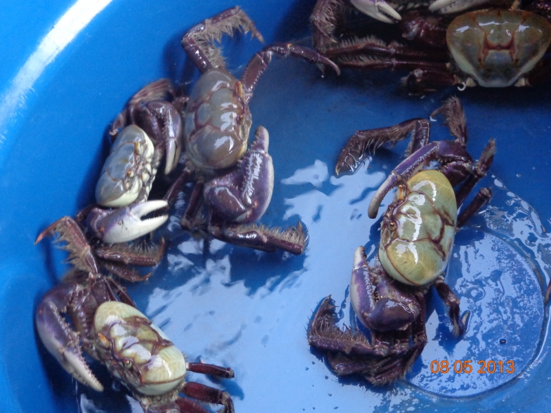 “Durante sua estada em nosso laboratório, as fêmeas foram nutridas com alimentos à base de peixes e camarão até a eclosão dos ovos. É neste momento que ‘nasce’, em forma de larva, a iguaria tão apreciada por baianos e turistas. As larvas então são colocadas em tanques onde se alimentam de microalgas e microcrustáceos e vão se desenvolvendo até atingirem o estágio de megalopas”, explica a técnica da Bahia Pesca, Eliane Hollunder. “Os animais são então mantidos em tanques com temperatura, nível do ph, oxigenação salinidade da água monitoradas até serem soltos no meio ambiente”, finaliza.