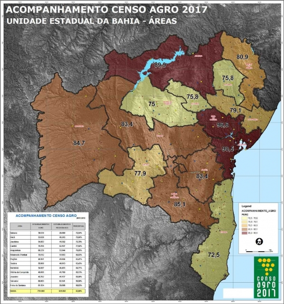 ** Coleta ultrapassa 80% dos estabelecimentos em 53 das 89 subáreas (grupos de municípios próximos entre si) da Bahia; em 9 delas já foram encontradas mais propriedades do que o previsto;