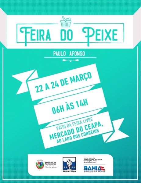 Os consumidores de Paulo Afonso terão mais comodidade para comprar o pescado da Semana Santa. A Bahia Pesca (empresa vinculada à Secretaria de Agricultura), em parceria com a prefeitura de Paulo Afonso, realiza entre os dias 22 e 24 de março, no Mercado da Ceapa (Avenida José Hemetério de Carvalho, bairro Perpétuo Socorro), a Feira do Peixe. Cerca de 30 pescadores irão comercializar diversas espécies de pescado, das 6h às 14h.