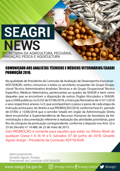 COMUNICADO AOS ANALISTAS TÉCNICOS E MÉDICOS VETERINÁRIOS/SEAGRI