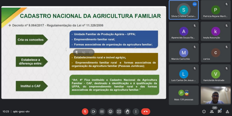 Seagri, SDR e MDA promovem oficina virtual sobre Cadastro Nacional da Agricultura Familiar (CAF)