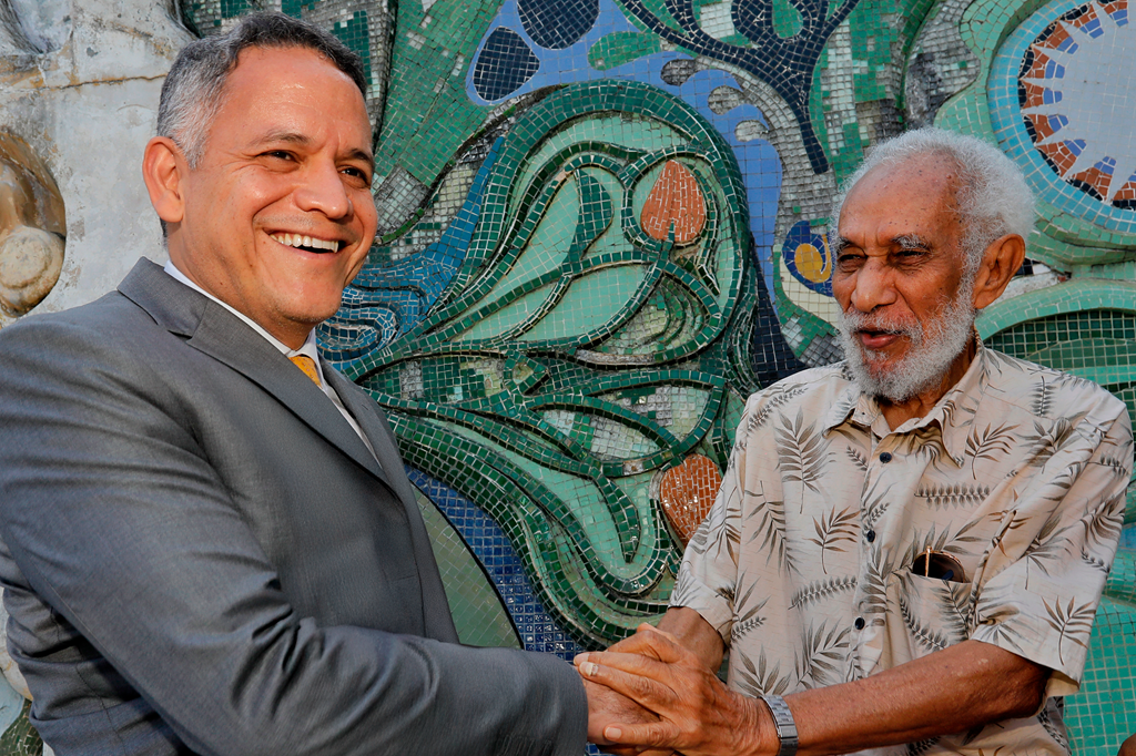 A Secretaria da Agricultura, Pecuária, Irrigação, Pesca e Aquicultura (Seagri) incluiu em seu plano de reforma da sede, no Centro Administrativo da Bahia (CAB), a restauração de uma das obras mais expressivas do modernismo baiano em espaço público: o mural criado em 1974 pelo artista baiano, Juarez Paraíso. Nesta segunda-feira (13), o artista foi recebido pelo secretário Pablo Barrozo para dialogar sobre um plano para a restauração da obra.
