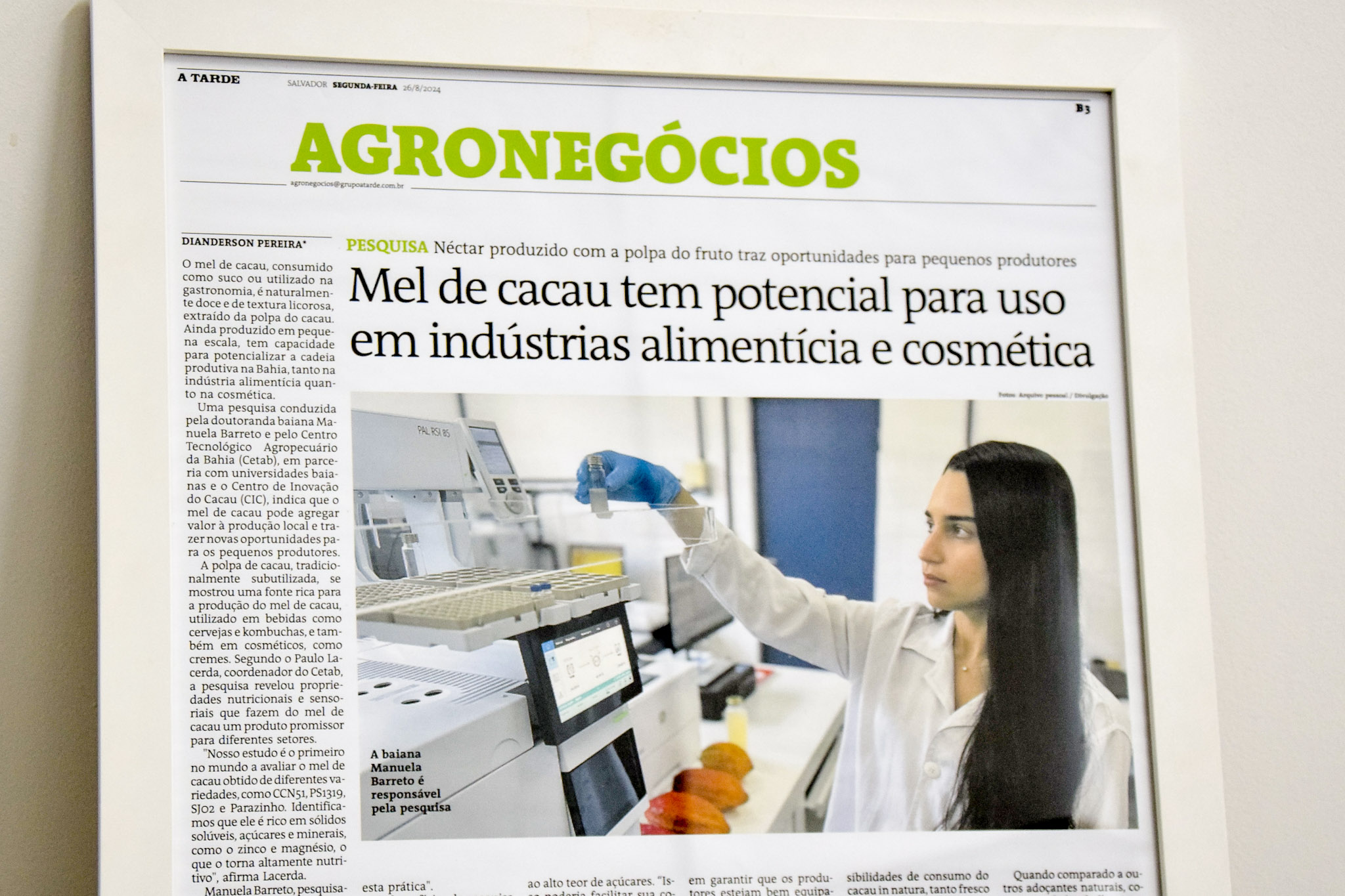 Uma pesquisa científica pioneira realizada pela doutora Manuela Barreto, pesquisadora do Centro Tecnológico Agropecuário da Bahia (CETAB), órgão vinculado à Secretaria da Agricultura, Pecuária, Irrigação, Pesca e Aquicultura (Seagri), foi premiada como a melhor tese de doutorado na área de Ciências Agrárias da Universidade Federal da Bahia e projeta a Bahia como referência em inovação tecnológica.