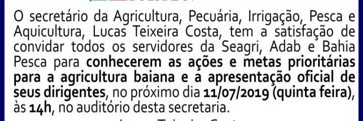 seagri - Secretaria da Agricultura, Pecuária, Irrigação, Pesca e Aquicultura
