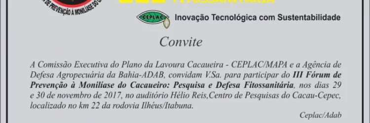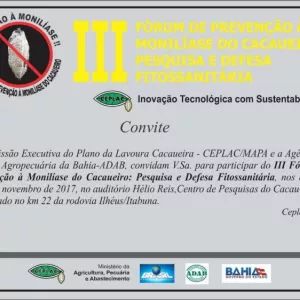 III FÓRUM DE PREVENÇÃO À MONILÍASE DO CACAUEIRO: PESQUISA E DEFESA FITOSSANITÁRIA