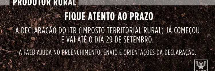 Começou o período de declaração do Imposto Territorial Rural (ITR)