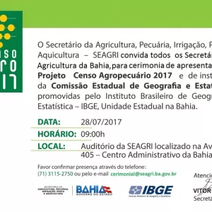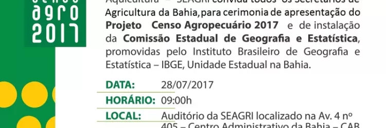 ACONTECE NA SEDE DA SEAGRI NO PRÓXIMO DIA 28/07 O CENSO AGRO 2017.