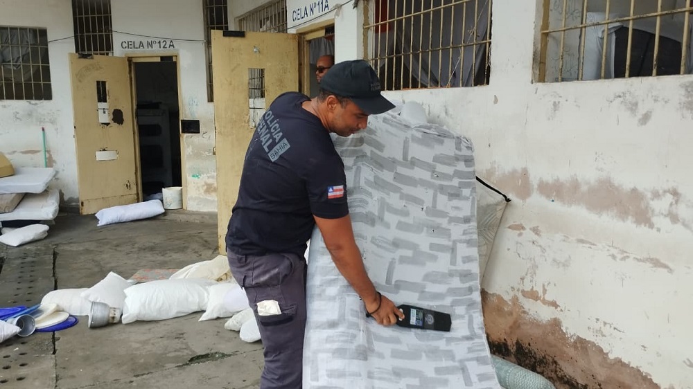 Pela manhã, foi realizada revista no Pavilhão A da Colônia Penal de Simões Filho (CPSF), com foco na identificação de materiais ilícitos e na verificação estrutural da unidade.