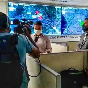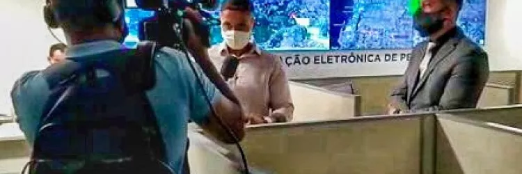 O Diretor José Fabiano de Carvalho da CMEP/ SEAP concede entrevista à TV Bahia sobre tornozeleiras eletrônicas.