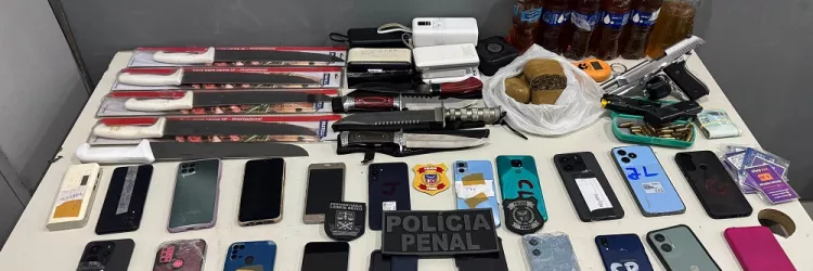 Policiais penais prendem homem que tentava entrar no presídio com arma e celulares
