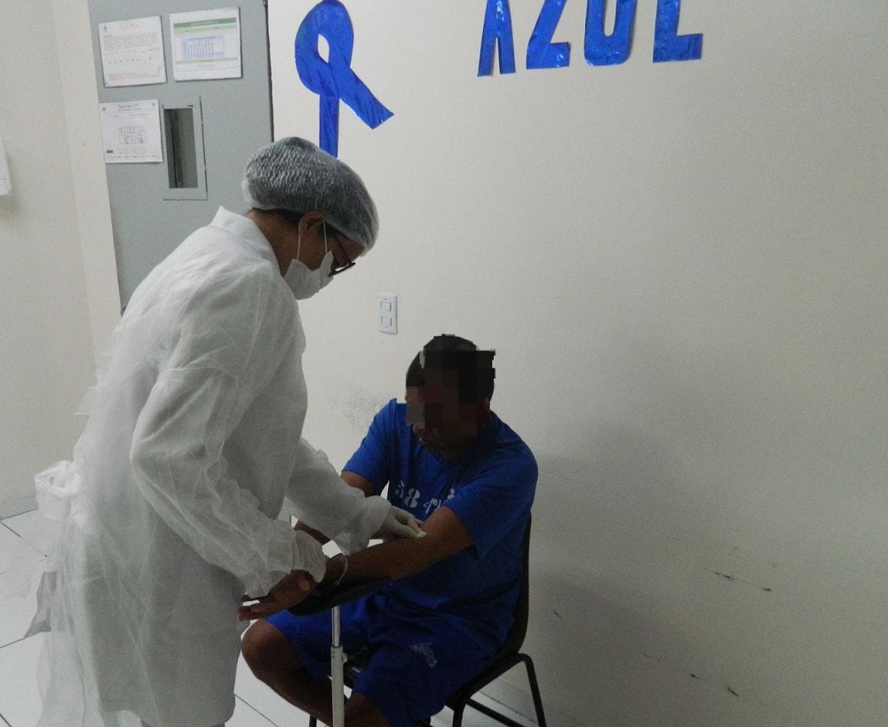 Em alusão ao Novembro Azul, custodiados do Conjunto Penal de Serrinha (CPS), com idades a partir dos 40 anos, passarão por ações de prevenção ao câncer de próstata. Equipes de saúde iniciaram, nesta terça-feira (5), a coleta do PSA - Antígeno Prostático Específico para os internos, além de orientações sobre as características da doença e os cuidados a serem observados.