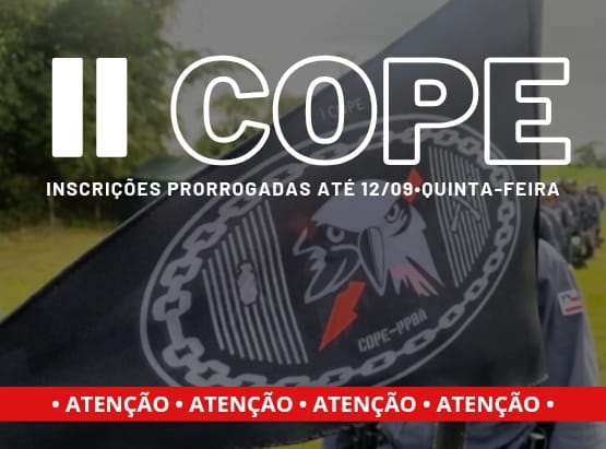 A Secretaria de Administração Penitenciária e Ressocialização, informa que as inscrições do II COPE foram prorrogadas até o dia 12/09/2024 (quinta-feira).