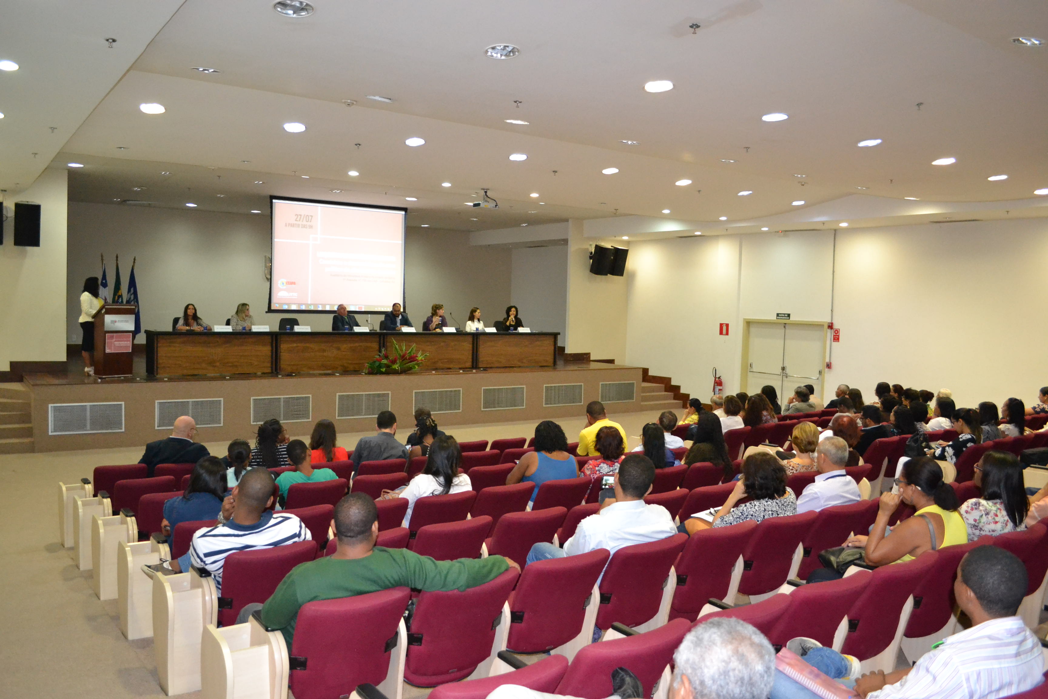 A mesa de abertura do evento, ocorrido no último dia 27,no auditório do Ministério Público do Estado, contou com a presença doChefe de Gabinete da Seap, Carlos Eduardo Sodré, daCoordenadora Geral da Ceapa,Andréa Mércia, doRepresentante da Sociedade Civil Organizada: CEN - Coletivo de Entidades Negras,Marcos Rezende, daDefensoria Pública,Andréia Tourinho, daRepresentante da Rede Social : CSU – Narandiba,Cláudia Rejane, daPromotora Pública,Mônica Barroso Costa, e doITTC,Mariana Câmara.