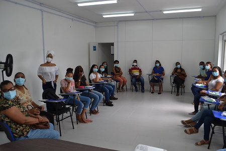 No total, inicialmente, serão ofertadas 30 vagas para os cursos de Telemarketing e Atendimento ao Público. A Equipe Técnica do ESBA, as Psicólogas Érica Ferreira e Geisa Copelo, e a Assistente Social, Emanuele Nery, com o apoio das estagiárias Andressa Oliveira (Psicologia) e Léia Souza (Serviço Social), propuseram dinâmicas de grupo que resgatassem a autoestima, autoconfiança, desenvolvimento profissional e pessoal.