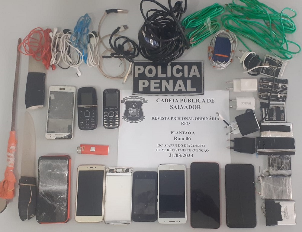 Na operação, coordenada pela Secretaria de Administração Penitenciária e Ressocialização - SEAP com apoio da Secretaria de Segurança Pública- SSP, foram apreendidos 10 celulares, oito baterias, cinco carregadores, cinco fones de ouvido, três cabos USB, 10 metros de fio, seis armas brancas tipo chunchu, duas facas artesanais e um isqueiro.