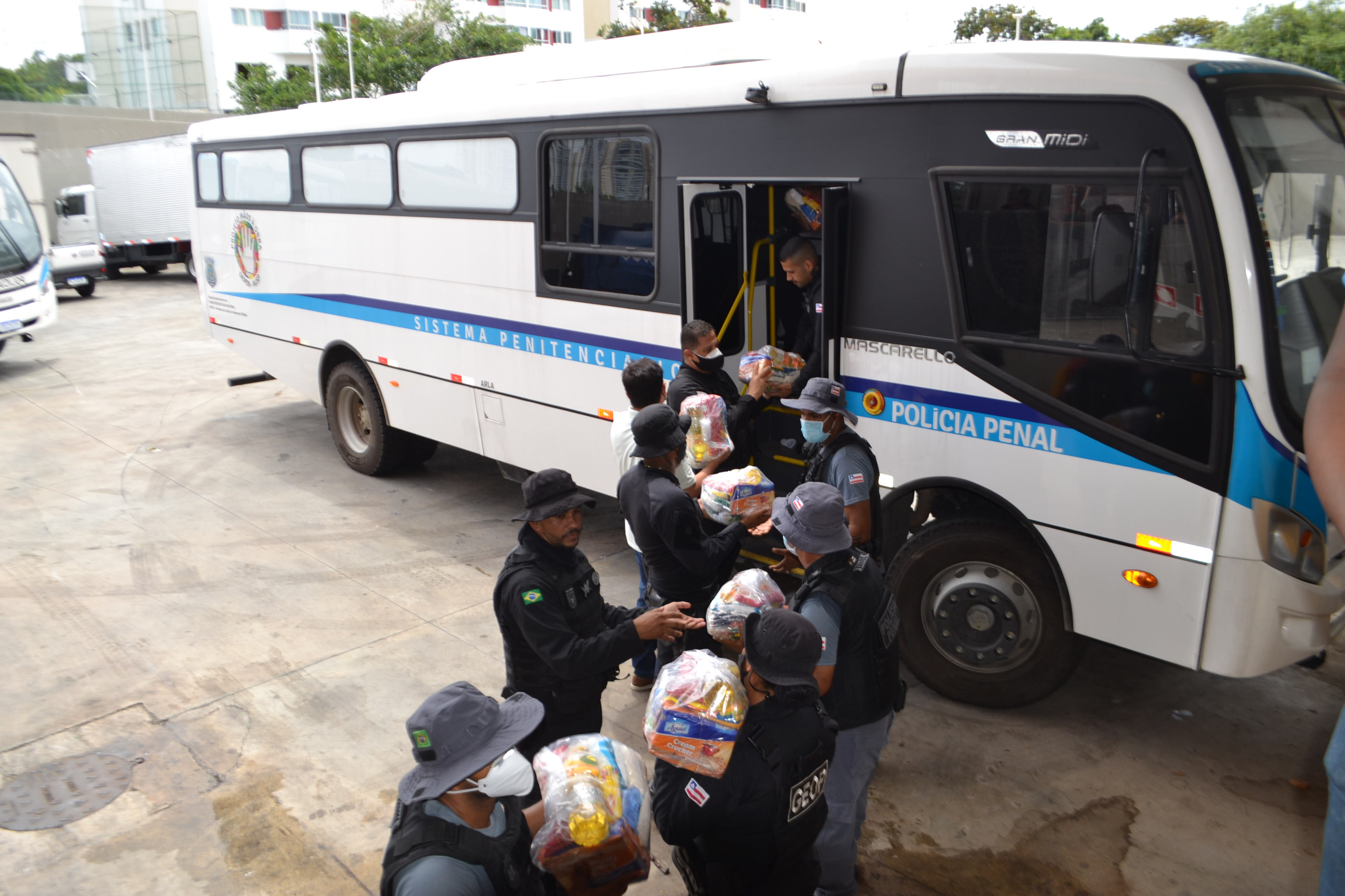 Com apoio logístico da Secretária de Administração Penitenciária e Ressocialização (SEAP), foram entregues no último dia 04, no Ministério Público da Bahia de 500 cestas básicas e mais de 2.600 litros de água mineral para doação às famílias assoladas pelas chuvas no Estado da Bahia.