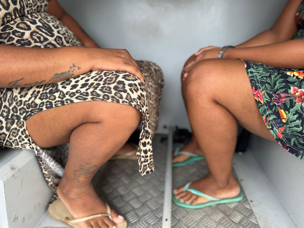 Uma das suspeitas está grávida. Elas foram levadas por policiais penais ordinários para a Central de Flagrantes.