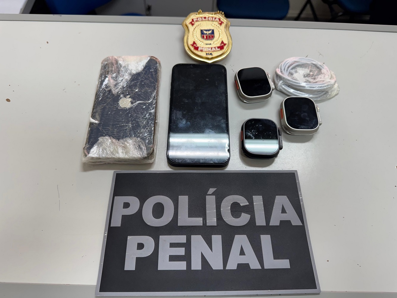 A Seap, por meio da Polícia Penal, prendeu em flagrante um homem que tentava entrar no Conjunto Penal Masculino de Salvador, no bairro da Mata Escura, com um aparelho celular, três relógios smartwatches e um cabo carregador USB, nesta quarta-feira (7).
