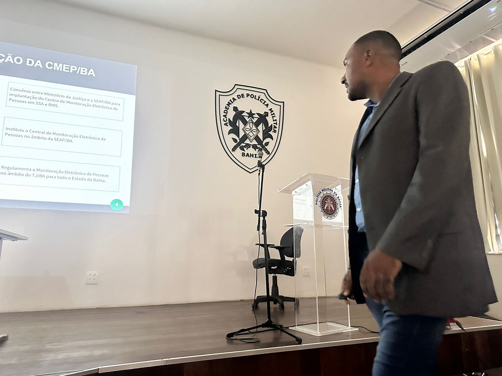 À convite da Academia de Polícia Militar do Estado da Bahia, Policiais Penais participaram hoje (21) de um ciclo de Palestras para alunos do Curso de Formação de Oficiais com o projeto "Conhecendo a SEAP", que apresenta em detalhes o trabalho desenvolvido pela Secretaria de Administração Penitenciária e Ressocialização.