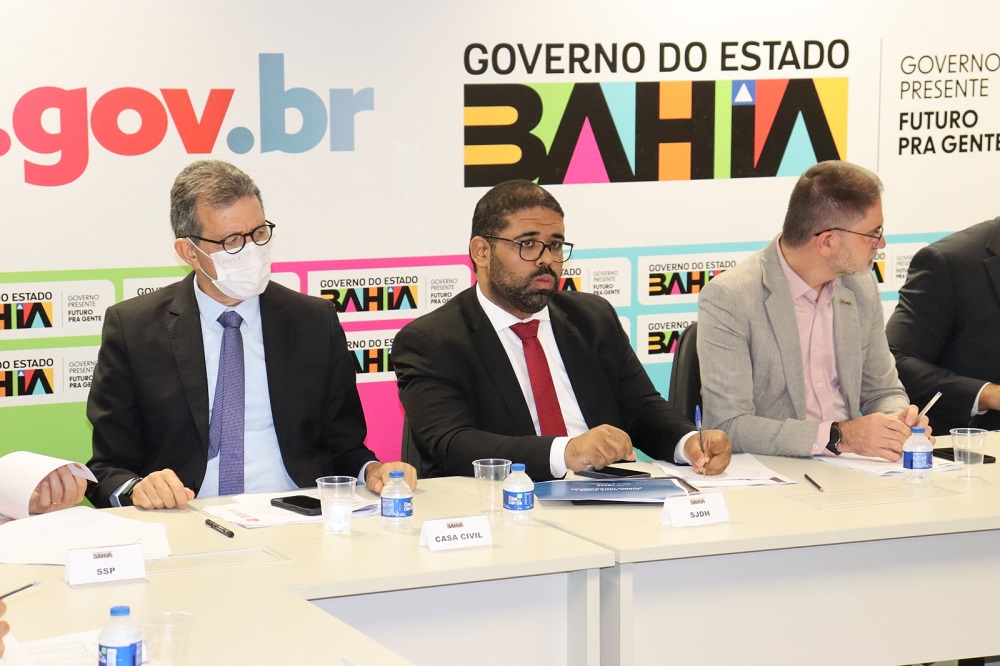 Além do titular da pasta da Seap, José Castro Filho, participaram do encontro os secretários de Segurança Pública (SSP-BA), Marcelo Werner; de Justiça e Direitos Humanos, Felipe Freitas; o da Casa Civil, Afonso Florence; de Educação do Estado da Bahia (Sec), Rowenna dos Santos Brito; de Assistência e Desenvolvimento Social (Seades), Fábya dos Reis Santos; o chefe de Gabinete do Governador, Maurício Weidgenant; e representantes do Grupo de Monitoramento e Fiscalização do Sistema Carcerário e Socioeducativo do Tribunal de Justiça do Estado da Bahia – GMF/TJBA; Defensoria Pública do Estado da Bahia – DPE; Ministério Público do Estado da Bahia – MPE (Grupo de Atuação Especial de Execução Penal – GAEP); e Secretaria de Cultura do Estado da Bahia – SECULT.