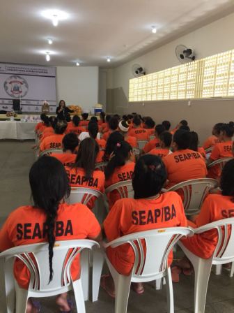 Conjunto Penal de Feira de Santana: palestra com a sexóloga Raquele de Carvalho Almeida e entrega de kits de higiene.