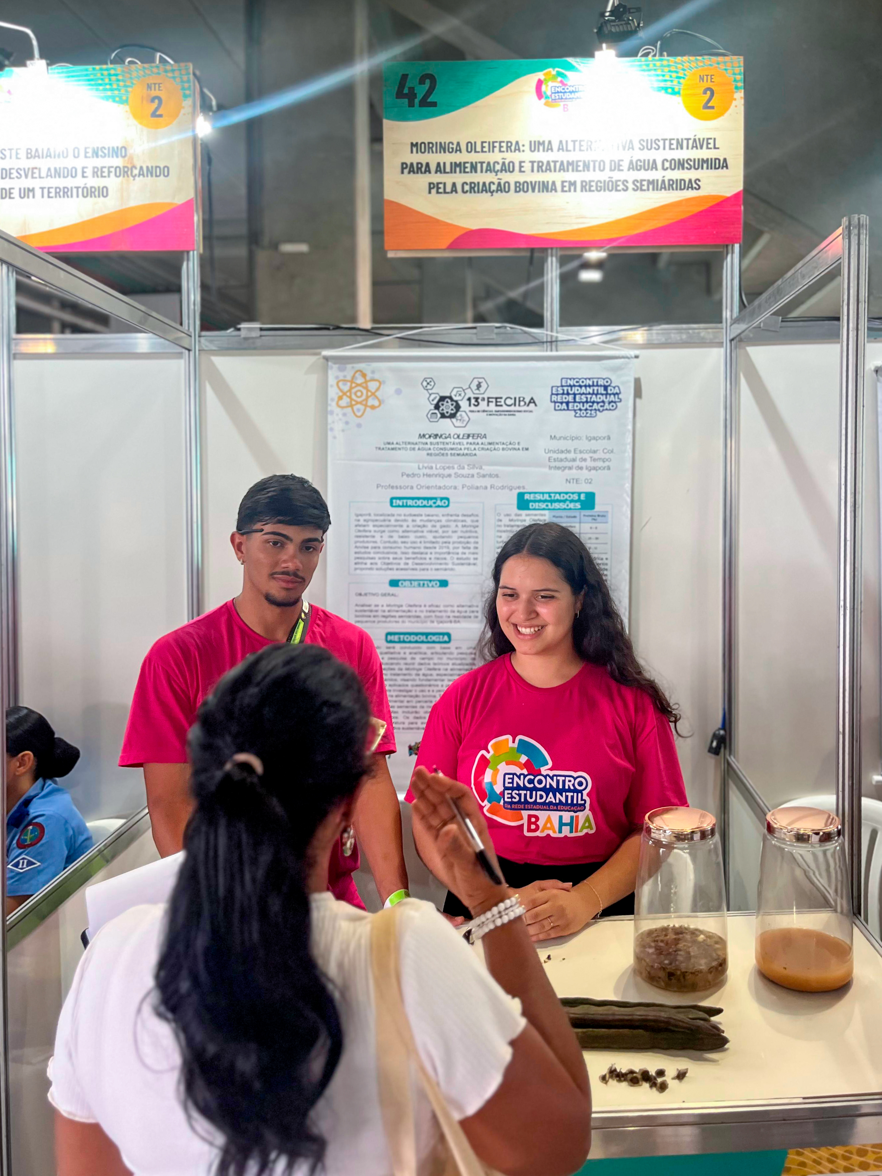 Esse problema estimulou os estudantes Lívia Lopes e Pedro Henrique, do Colégio Estadual de Tempo Integral de Igaporã, a buscarem uma solução alternativa para a alimentação bovina. Os jovens cientistas, orientados pelos professores Poliana Cardoso e Robson Costa, desenvolveram um suplemento alimentar à base de moringa (moringa oleifera).