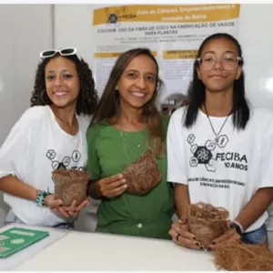 Estudantes baianas fabricam vaso para plantas à base de coco verde