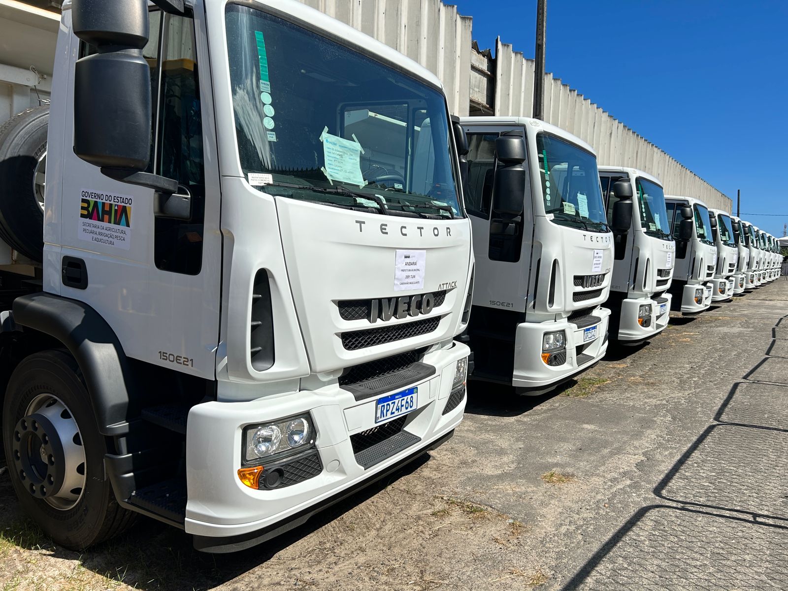 Nesta quinta-feira, 19 de outubro, no Parque de Exposições de Salvador, o governador Jerônimo Rodrigues e outras autoridades, entregaram a associações, cooperativas, sindicatos e prefeituras, uma variedade de equipamentos, entre tratores, tanques resfriadores para leite, retroescavadeiras, rolos compactadores, carretas pipas e outras máquinas.