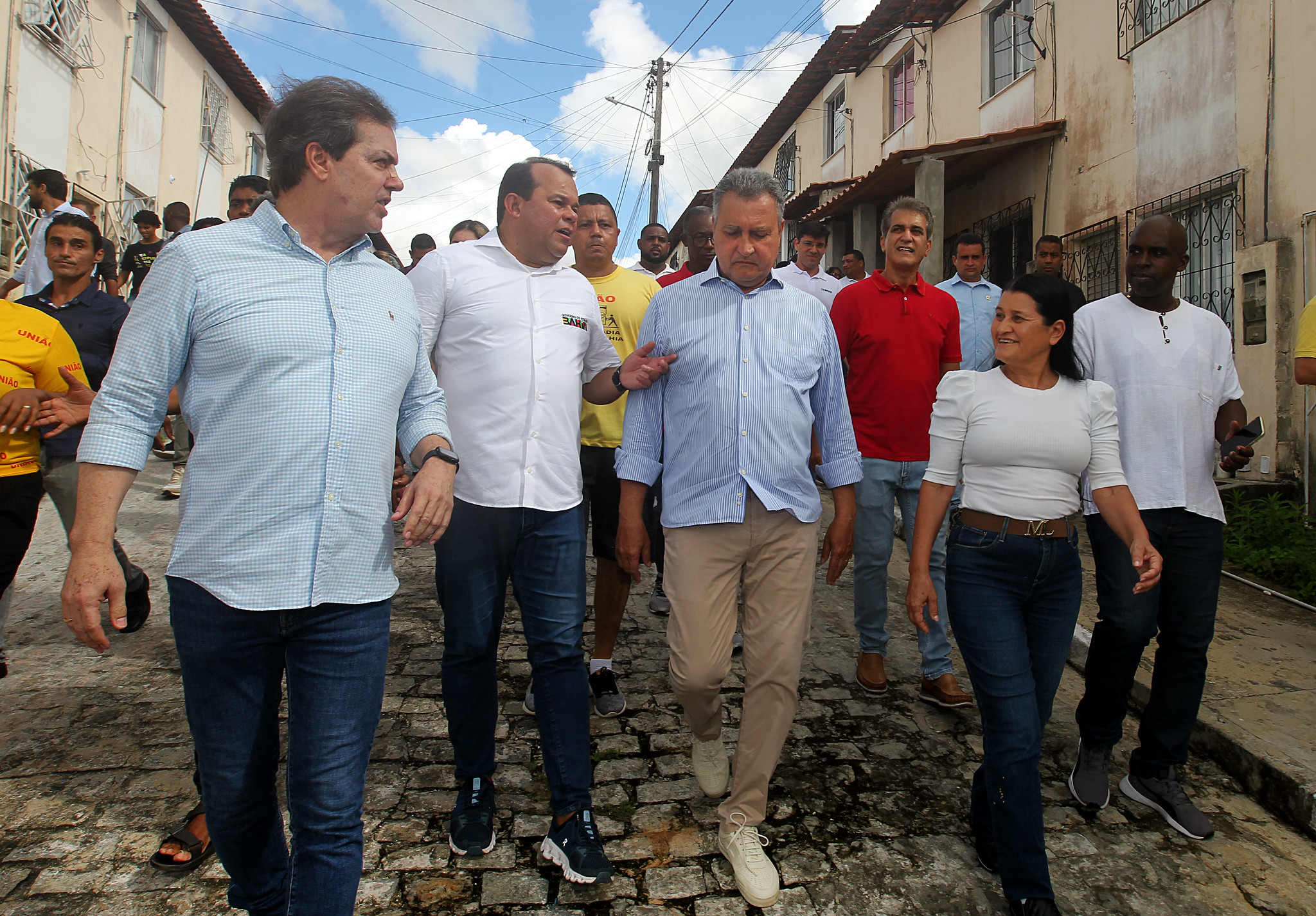Uma visita do governador em exercício, Geraldo Júnior, e do ministro da Casa Civil, Rui Costa, ao Condomínio Solar das Mangueiras, na Fazenda Grande 4, em Salvador, neste sábado (15), marcou mais uma parceria dos governos estadual e federal para finalização de obras paradas do Minha Casa, Minha Vida, na Bahia. No local, já residem cerca de 200 beneficiários, mas a obra foi interrompida, em 2018, com 98% dos trabalhos feitos, após corte de recursos para o programa pela gestão federal anterior.